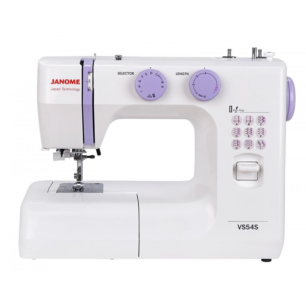 Швейная машина Janome VS-54S - швейная машинка для домашних нужд. Простая в управление, интуитивна понятна и недорогая по стоимости. Отличная модель для новичков в шитье.