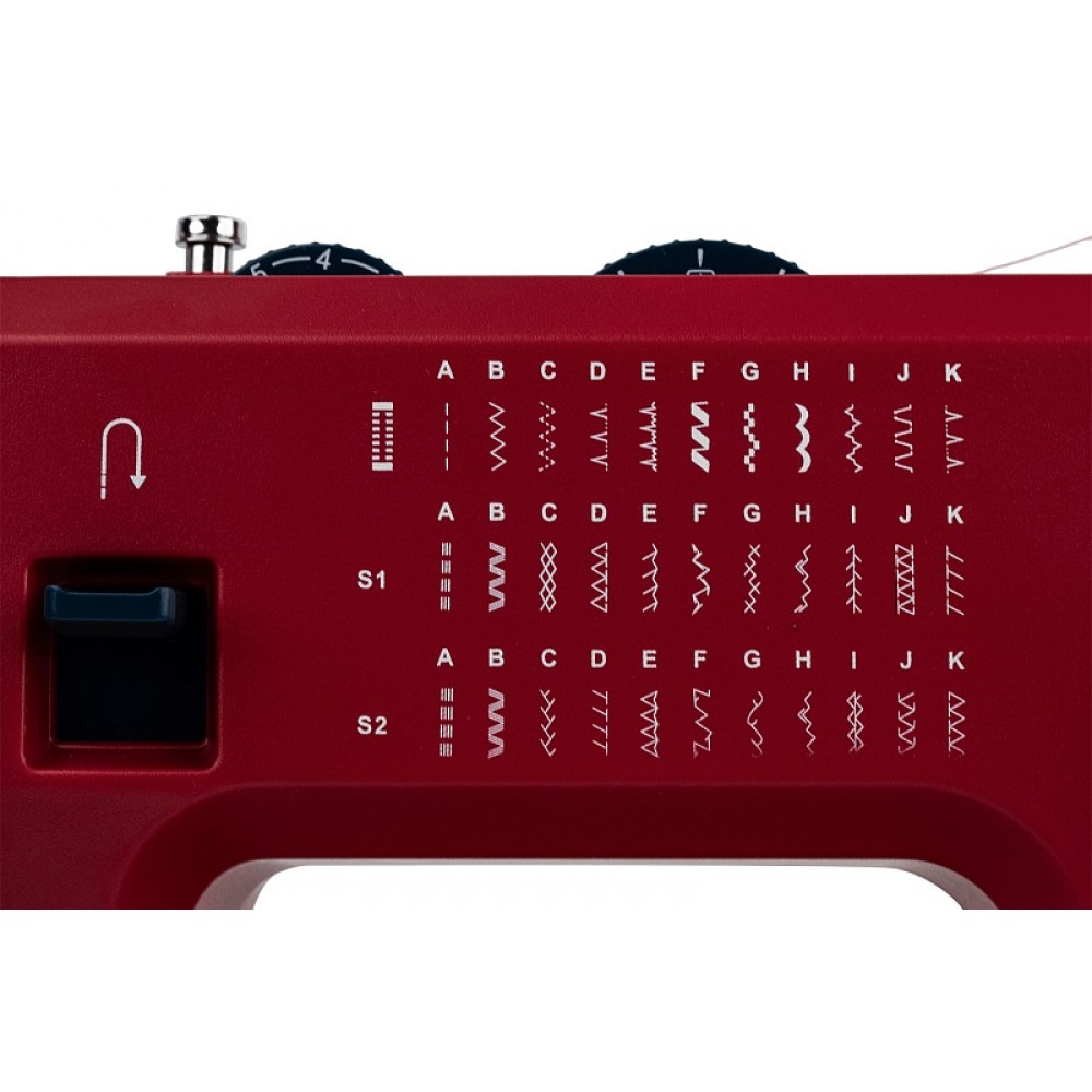 - Регулировка длины стежка плавная при помощи колесика на верхней части корпуса;