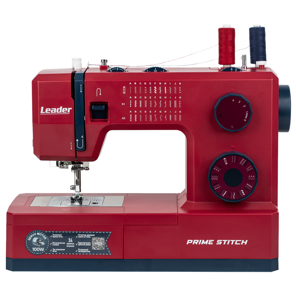 - Leader PRIME STITCH оснащена нитевдевателем, ручным обрезчиком и приятной глазу светодиодной подсветкой. Такие лампочки ярче светят и долго не перегорают.