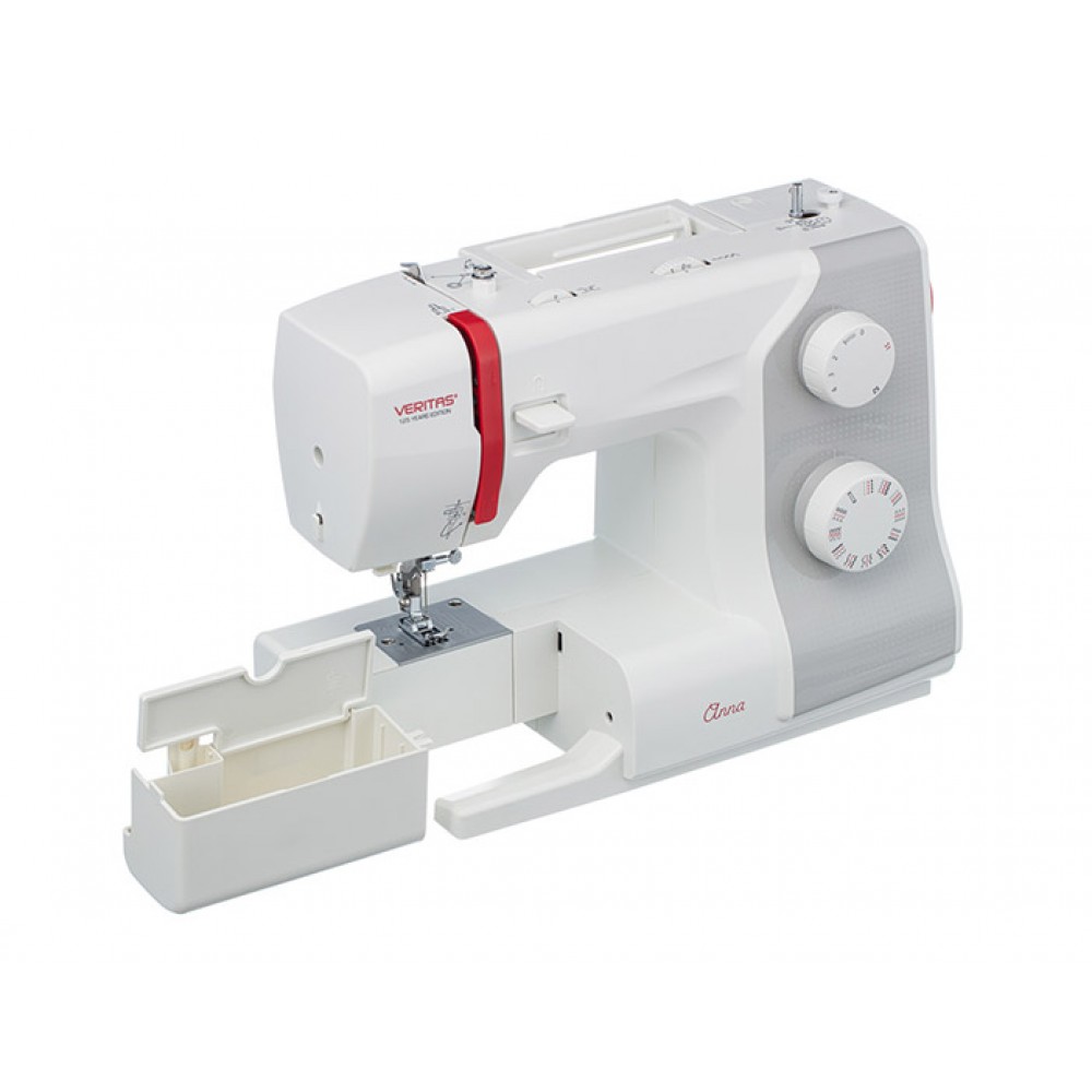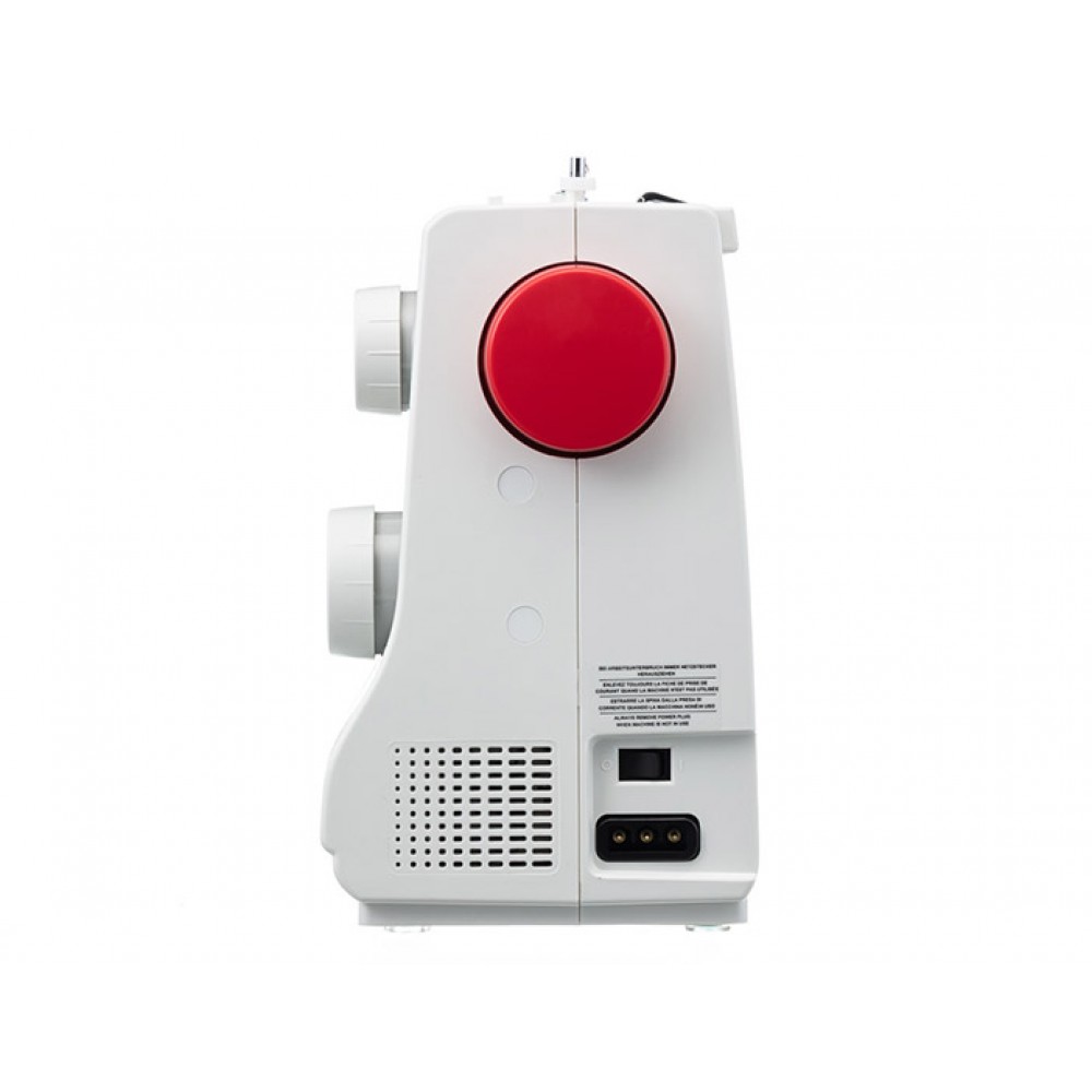 | Комплектация | Универсальная лапка Лапка для автоматической петли Лапка для вшивания молнии Лапка для пришивания пуговиц Роликовая лапка Приспособление для трудных мест Штопальная пластина Направитель для квилтинга Шпульки Держатель катушки большой Держатель катушки малый Вертикальный катушечный стержень Фетровая прокладка Вспарыватель/щёточка для чистки пыли Набор игл Отвёртка-ключ Педаль |