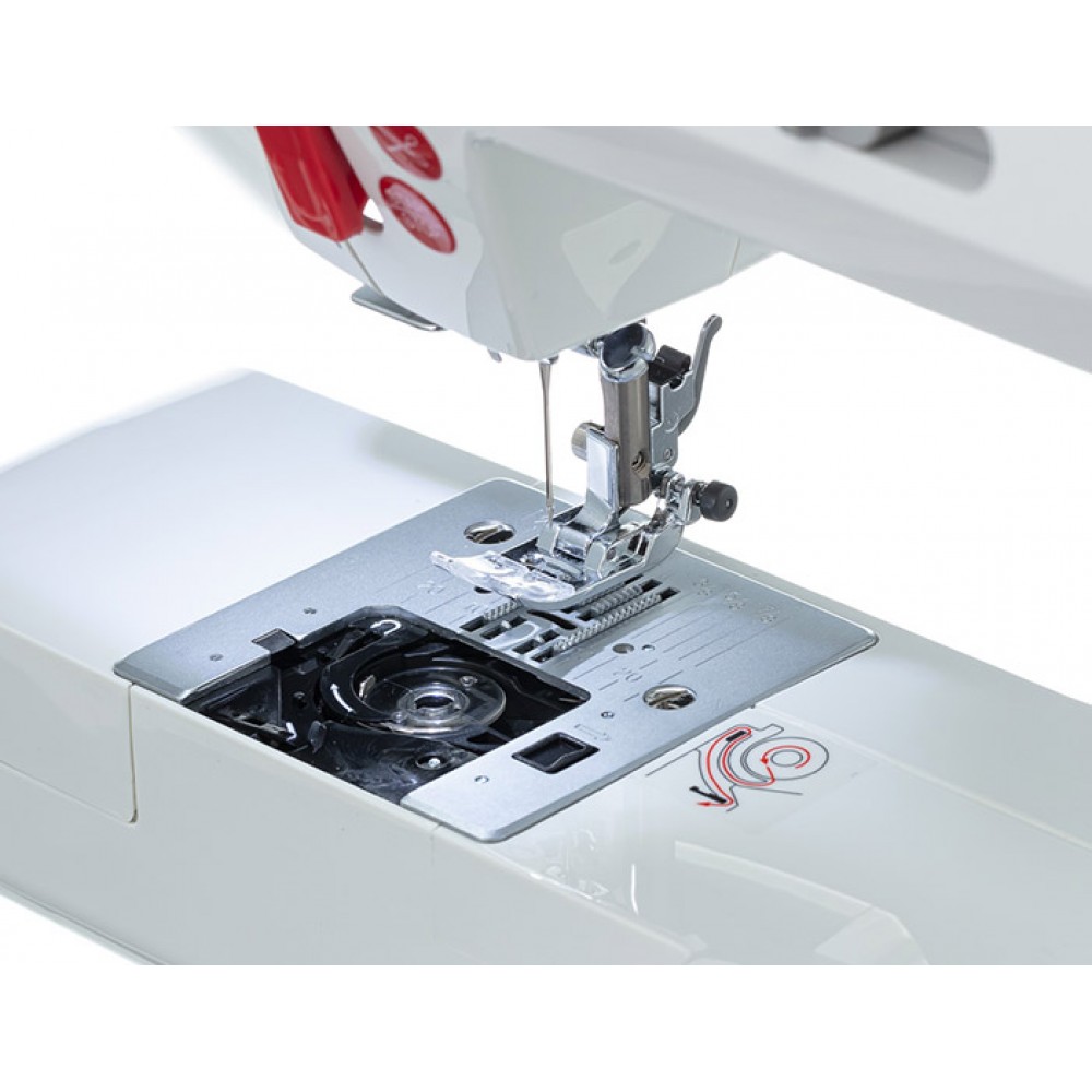 Каждая строчка предварительно запрограммирована на оптимальные параметры длины и ширины стежка. Функция памяти позволяет сохранить любимые настройки стежков. На передней панели размещены кнопки с полезными функциями, которые ускоряют и облегчают процесс шитья.