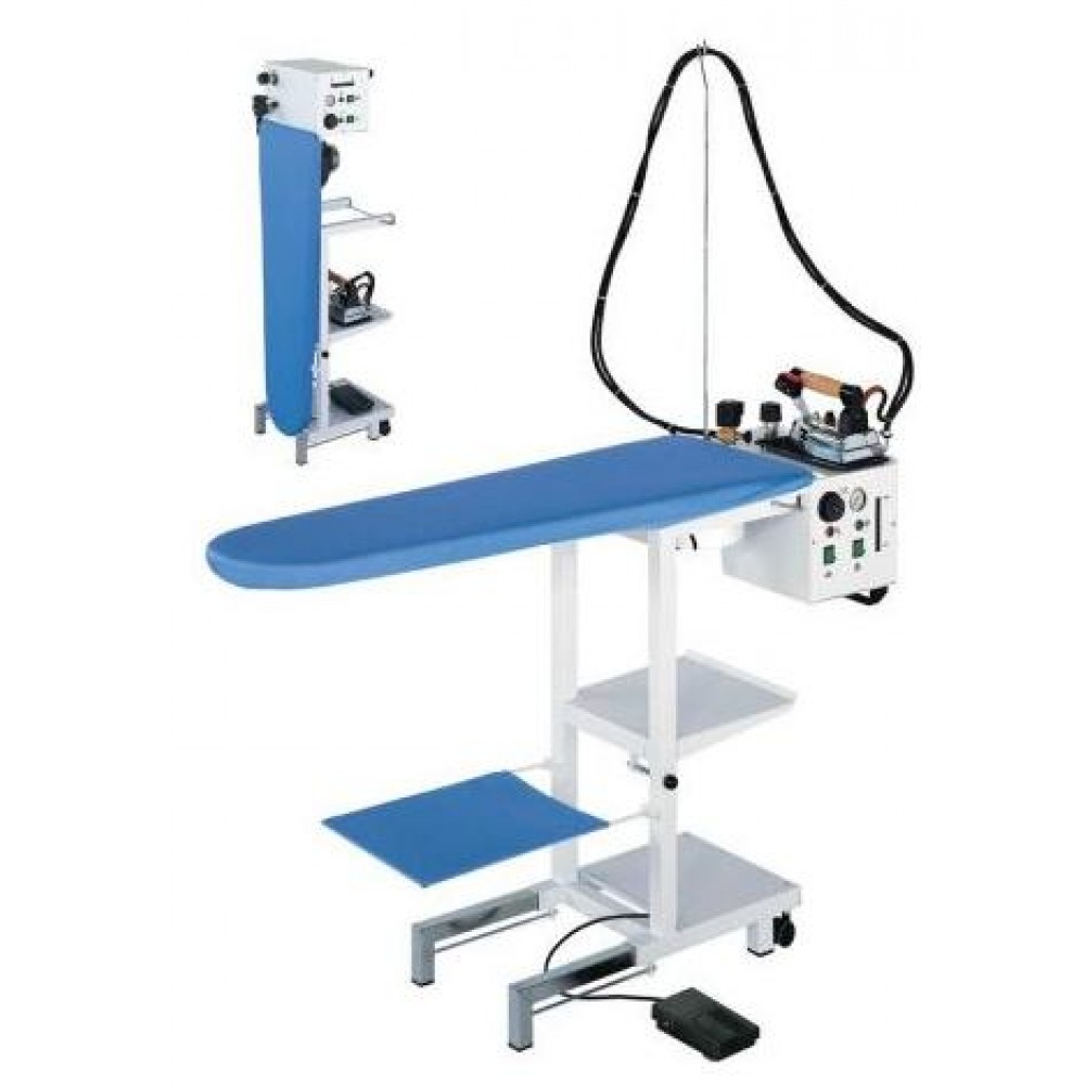 Активный гладильный стол с парогенератором для профессиональной работы и домашнего использования. Две функции доски: нагрев поверхности и вакуум. В стол встроены подогрев рабочей поверхности, и вентилятор отсоса воздуха. Величину нагрева можно регулировать. В комплектацию стола входит парогенератор с предохранительным аварийным клапаном, силиконовая подставка под утюг, электроклапан для регулировки количества выходящего из утюга пара, а также антенны, поддерживающей провода. Утюг в комплектацию не входит, его необходимо приобретать отдельно. Предназначенная для глажения любых швейных изделий из легких и средних тканей, удобна в эксплуатации. Хорошо применима на малых предприятиях. Конструкция доски мобильна, ее можно быстро сложить и убрать.Технические характеристики Comel Comelux Maxi C: