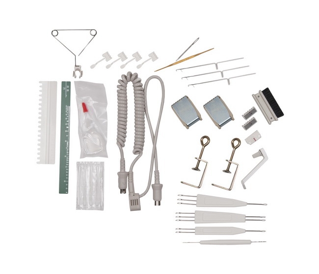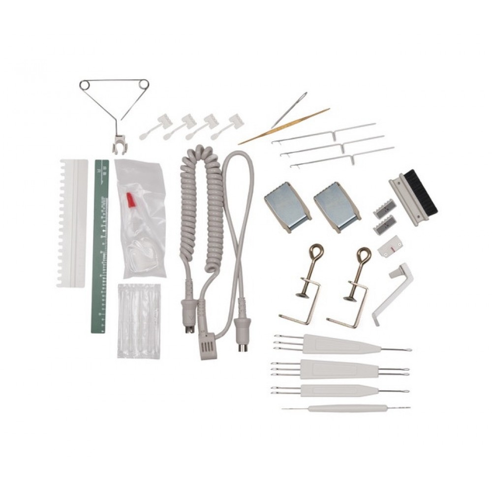 | Комплектация | Верхняя фонтура, Основная, дополнительная каретки, Нитеводитель, Вспомогательные пластины, П-каретка, Нитеводитель плотирования, Грузы, линейки,счетчик рядов, деккеры,запасные иглы, кулачки,"Меджик", перфокарьы с рисунком |